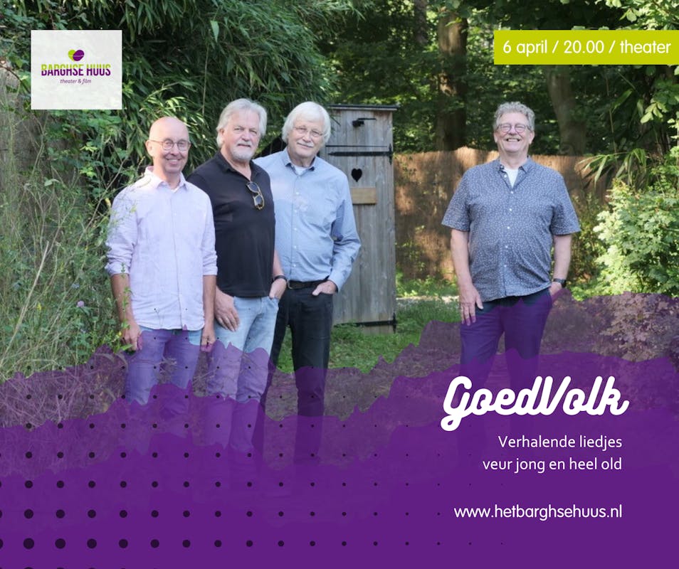 GoedVolk bestaat uit de gerenommeerde muzikanten Hans Beernink (gitaar, basgitaar en zang), Stef Geurtzen (gitaren, mondharmonica en zang), Hans Westerveld (gitaar, banjo, melodica, mandoline en zang) en Frans van Gorkum (zanger en verteller). De mannen van GoedVolk hebben een jarenlange ervaring met het musiceren op diverse fronten. Hans Beernink speelt al jaren in het duo Alles Andès. Stef Geurtzen, lid van Bennie Jolinks Pensionado’s, treedt solo op met eigen werk. Hans Westerveld, in 2018 winnaar van de prestigieuze prijs De Gelderse Kleiroze voor het meest haevige streektaalliedje, speelt in diverse bands en was frontman bij Spöl. Alle drie de mannen speelden in de band Bonne Route. Vierde man Frans van Gorkum speelt ook in streektaalband Diedel en was ooit met zijn tweelingbroer Dubbeldoyer.