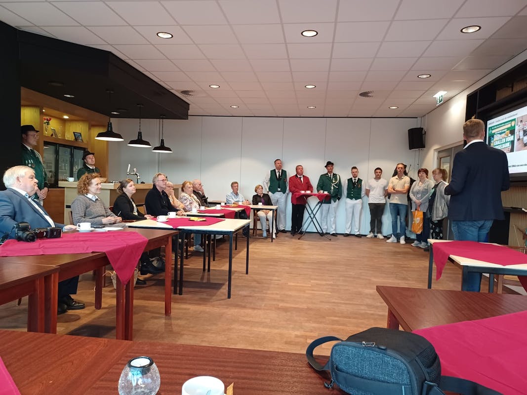 Daarna trakteerde Harmonie Volharding de burgemeester op een prachtig muziekstuk. Zij ruimden daar graag tijd voor in tijdens hun wekelijke repetitieavond. Aansluitend traden de kinderen van de jeugddansgarde op. Wat een enthousiasme en een kweekvijver voor de dansgarde van carnavalsvereniging de Leertrekkers! Aansluitend kreeg de burgemeester nog een vendelhulde van de vendeliers van het Gilde St Oswaldus.