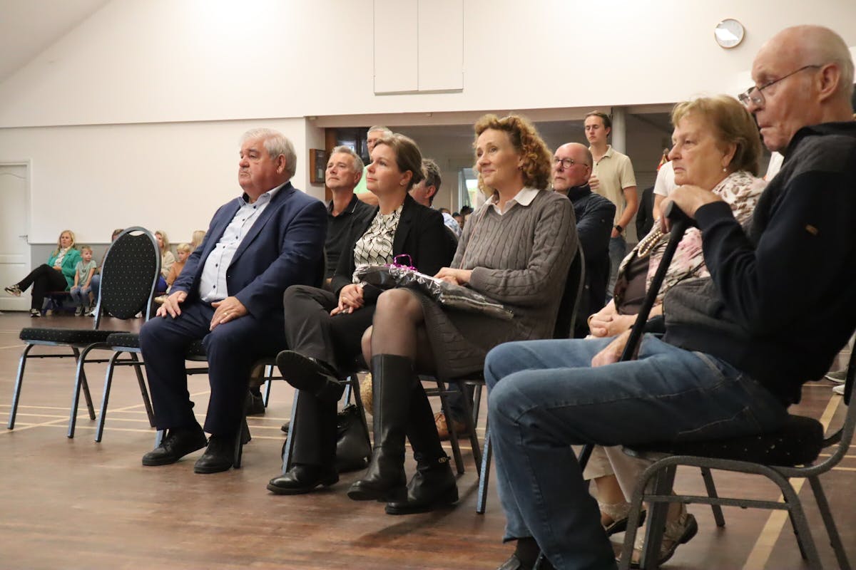Daarna trok de hele stoet naar het jeugdgebouw naast de kerk. Daar presenteerde John Seegers alle clubs die verbonden zijn het jeugdgebouw, de kerk, de pastorie en de begraafplaats: de KWJ, Soos Ons Genoegen, Koor For Joy, de kerkhofploeg en de buurtverbinders van MijnStokkum en de vrijwilligersploeg van het Huiskamerrestaurant, Ook nam hij de burgemeester mee in de plannen die er zijn om de kerk om te bouwen tot gemeenschapshuis. Vervolgens trakteerde koor For Joy de burgemeester op twee prachtige liederen in de kerk. Zij traden speciaal op en de burgemeester zag je mee zingen, dus wie weet hebben ze er nieuw lid bij. Na alle indrukken was het vervolgens tijd om onder het genot van een hapje en drankje gezellig na te praten in de huiskamer van de pastorie. De vrijwilligers van het huiskamerrestaurant verzorgden de hapjes en drankjes en nodigden de burgemeester uit voor de kersteditie in december in de kerk. Gerard van Balveren sloot de avond af met kort liedje, waarmee hij de burgemeester toezong. Daarna werd er geproost!