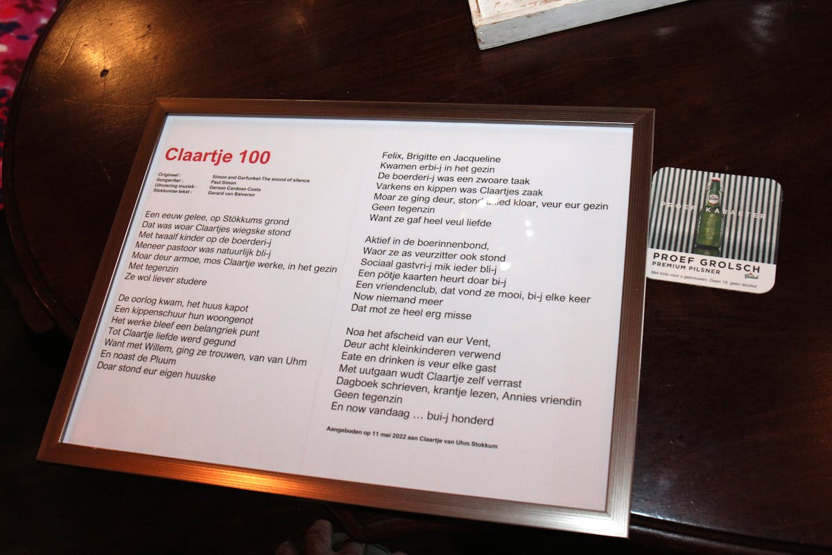De oudste inwoner van Stokkum, Claar van Uhm, werd woensdag 11 mei 100 jaar. Tijd voor een feestje met familie en vrienden, waarbij ze als verrassing werd toegezongen met het lied Ode aan de Pluum. Tevens was er een speciaal lied gecomponeerd over haar leven, hetgeen de verrassing nog groter maakte. Nog heel veel gezonde jaren toegewenst.