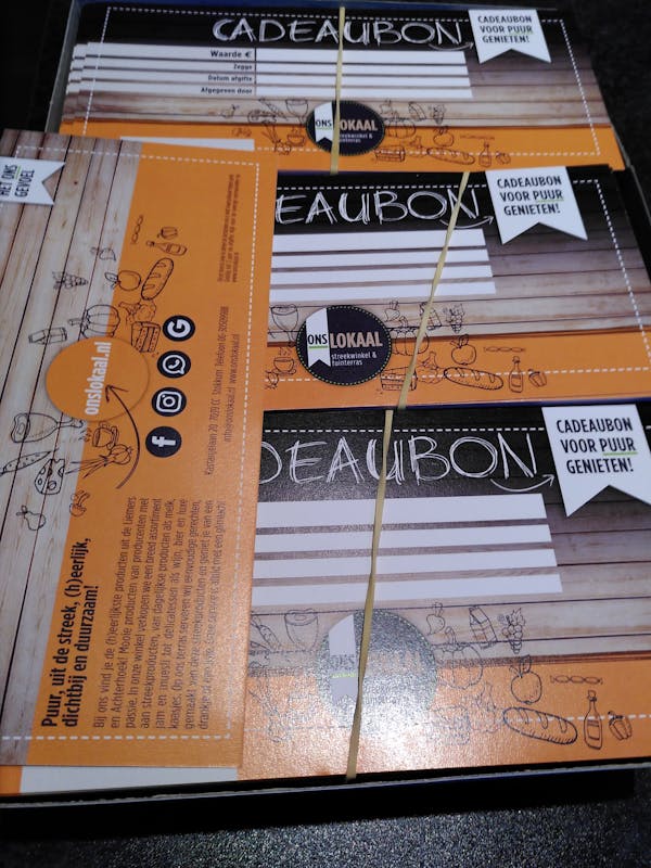 Omdat kwaliteit en zorgvuldigheid belangrijker is dan snelheid, laat de opening van OnsLokaal nog even op zich wachten. De voorlopige planning is dat de winkel (met tuinterras!) in februari opent. Wil je al eerder het lokale gevoel van OnsLokaal in huis halen? Koop dan alvast een cadeaubon. Voor ieder gewenst bedrag en in delen te besteden.
