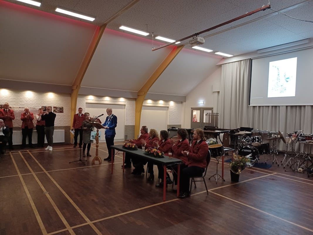 Vanaf nu mag de Harmonie zich Koninklijke Harmonie Volharding noemen! Het werd met gejuich ontvangen in de zaal!