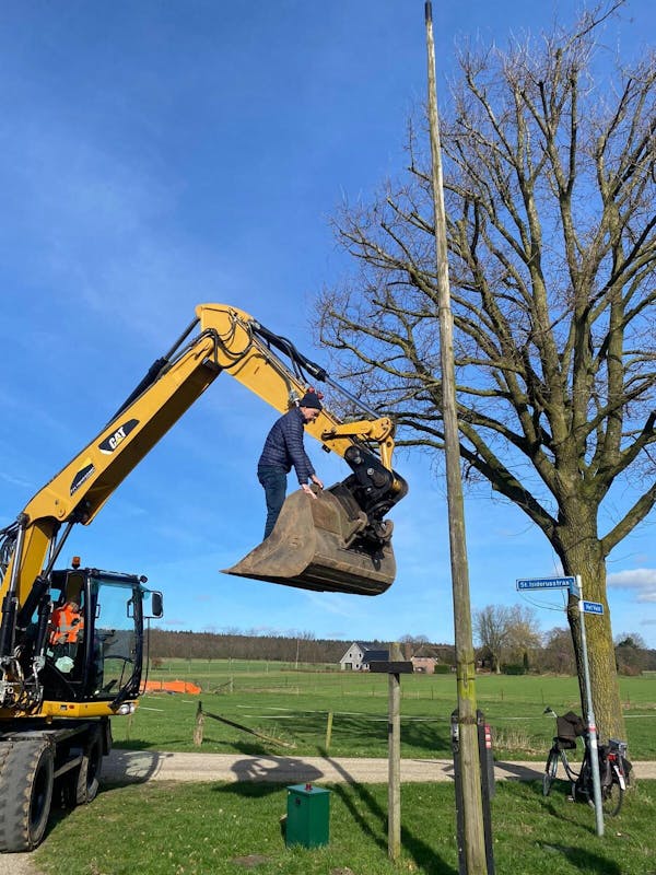 Afgelopen zaterdag heeft de werkgroep Hagelkruis, bestaande uit Marcel Voogd, André van der Veer, Renée Velsink, Rob Krijgsman en de spontane hulp van Pieter Beenen, naast de essentiële support van kraanmachinist Frans Hendricksen, het Hagelkruis neergehaald.