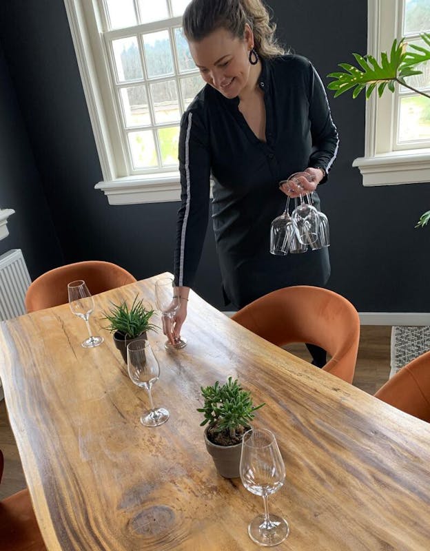 Maaike is blij dat ze nog kan werken en gasten ontvangen. “Mijn dienst begint nu om 12 uur, dan kunnen de mensen langskomen voor de take away. En zeker in het weekend komen er genoeg mensen langs die aan het wandelen of fietsen zijn. Als we nu hotelgasten hebben, zorg ik er als gastvrouw voor dat ze in de watten worden gelegd. Ook al zijn het maar twee kamers. Ik ben er dan wel vaak alleen samen met één van de koks, dus ik mis de gezelligheid van veel gasten en veel collega’s wel heel erg.”