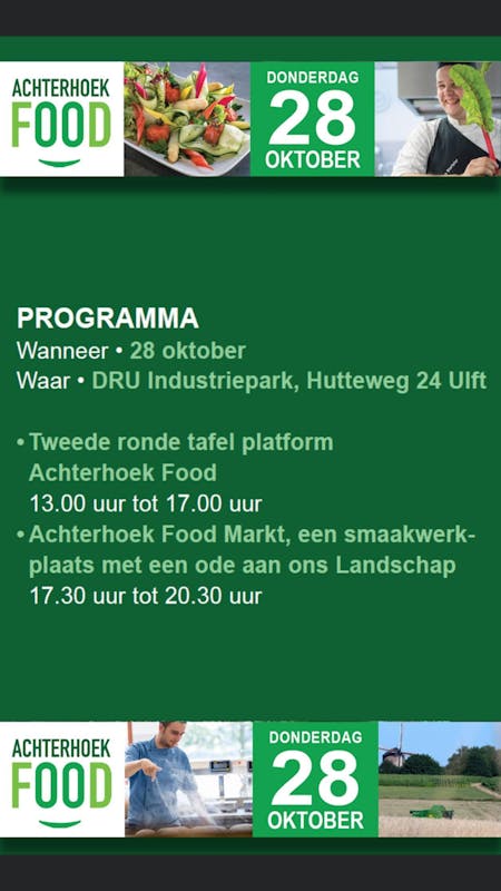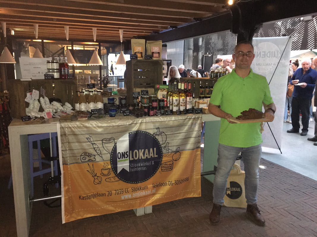 Gisteren zijn laatste werkdag bij de gemeente Renkum, vandaag meteen aan de bak als zelfstandig ondernemer. Onze dorpsgenoot André Menting van OnsLokaal stond vanavond op de Achterhoek Food Markt in de Dru in Ulft. Op het kraampje van André lagen heerlijke producten uitgestald zoals droge worst van Brandt & Levie, wijnen van Wijngoed Montferland en cakemixen van de Zeddamse molen.