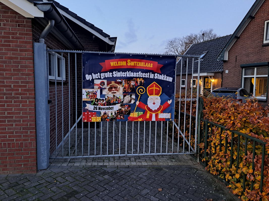 Breng hem naar 't lokaal (Kastanjelaan 20) zonder getreuzel, waar Sint hem bekijkt, vol vreugde en speels gekwezel.