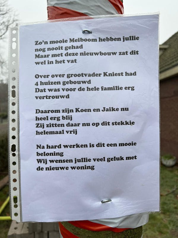 Op 10 december hebben we bij Koen en Jaike Janssen en hun beide kinderen een meiboom gezet , bij Kastanjelaan 7, met buurt "Dierenpark".
