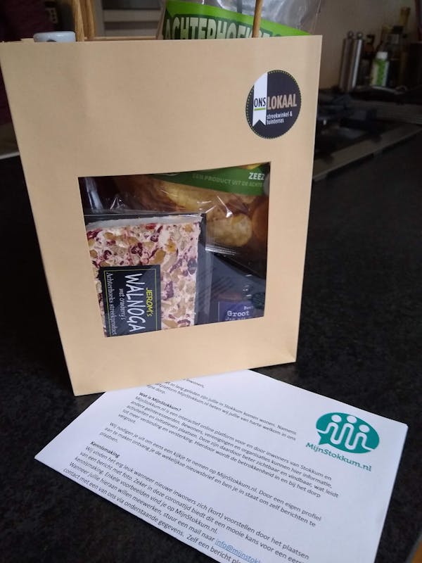 Buurman Freddy van Dijken, tevens buurtverbinder voor MijnStokkum, maakte meteen gebruik van de gelegenheid een welkomspakket uit te delen aan de nieuwste (toekomstige) bewoners van Stokkum.