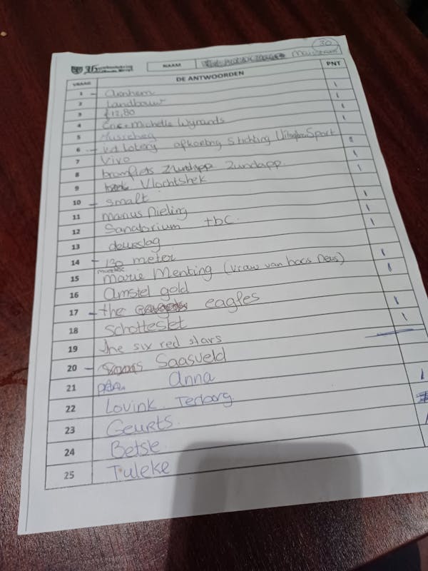 Wie tijdens de lezing van Edwin Zweers op vrijdagavond goed had opgelet, kon nu hun kennis testen en nieuwkomers in Stokkum kregen de kans om tijdens de pubquiz nog meer te leren over het dorp en het dialect.