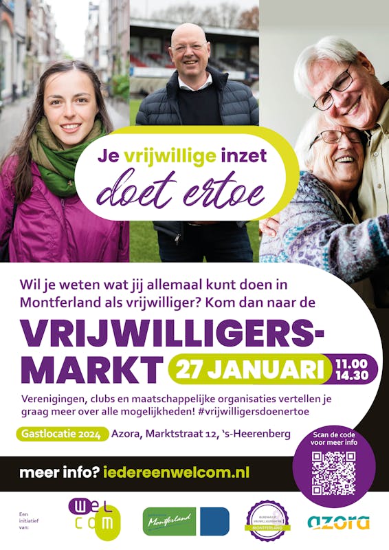 Wil je weten wat je allemaal kunt doen als vrijwilliger? Kom dan naar de vrijwilligersmarkt op zaterdag 27 januari tussen 11 en 14.30 uur. Kom je ook?