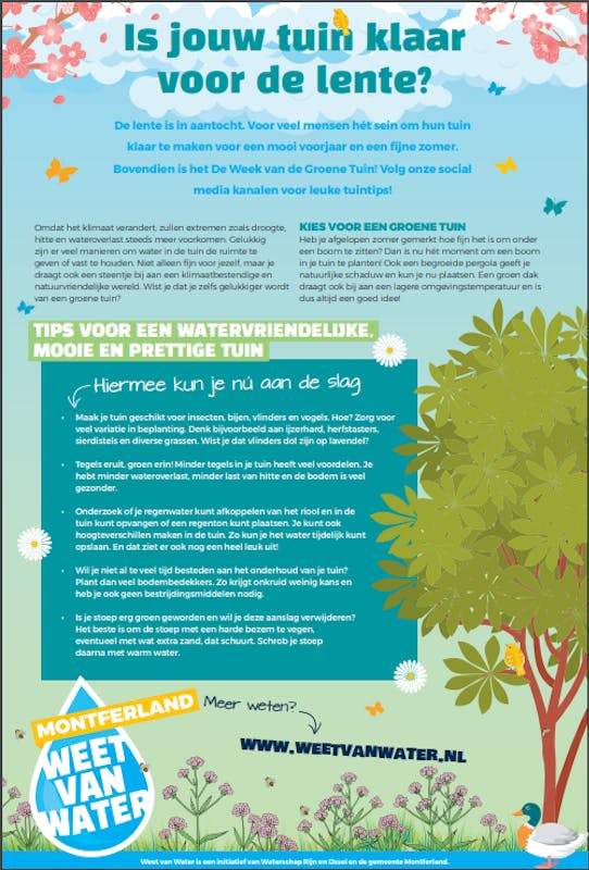 Wij hebben wat tuintips voor de inwoners van Stokkum! De Gemeente Montferland doet mee aan de campagne Weet van Water en je vindt allerlei tips op de website Weet van Water