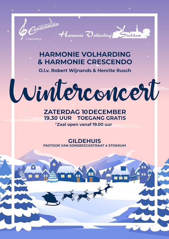 Op zaterdag 10 december houdt Harmonie Volharding uit Stokkum in samenwerking met Harmonie Crescendo uit 's-Heerenberg een winterconcert in het Gildehuis. De toegang is gratis.