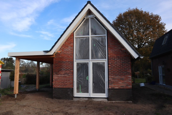 8 december 2021: de betimmering is gereed en het glas zit er in (aanzicht achterzijde).